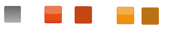 Die Abbildung zeigt den Button aus dem Mock-Up links, sowie den von der Grafikerin erstellten Button, mit zwei unterschiedlichen Zuständen (Mitte). Rechts befinden sich die Zustände, nachdem sie an das vorgegebene Farbschema angepasst wurden.