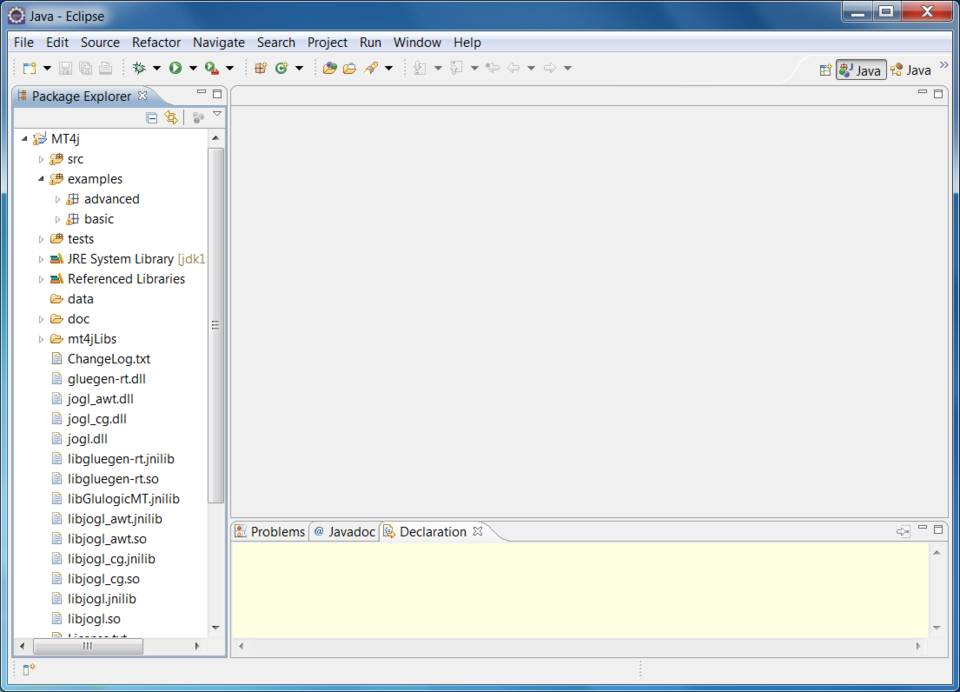 - Die heruntergeladene ZIP-Datei entpacken (MT4j 0.95 full release)