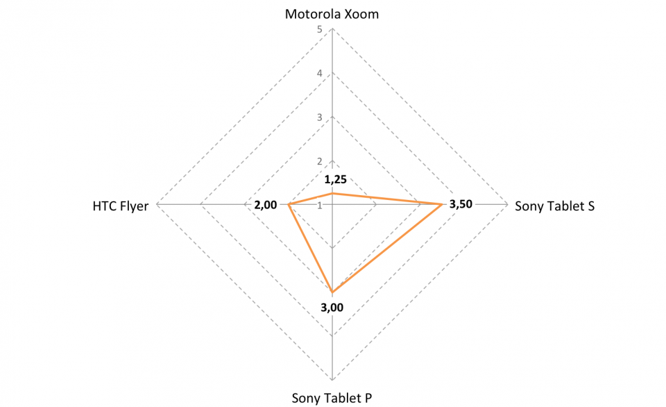 | Sony Tablet S | 2 | 2 | 1 | 0 | 1 |