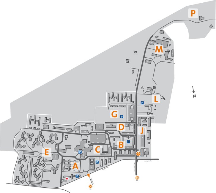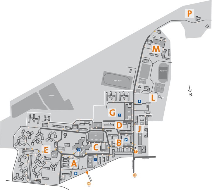 Diese Karte wurde im Rahmen der Beschaffung eines Leitsystems für die UniBwM erstellt. Sie zeigt alle Gebäude des Universitätsgeländes in zwei Dimensionen sowie alle Straßen und weitere wichtige Objekte. So sind neben Parkplätzen auch Straßennamen auch einige Sportstätten verzeichnet. Der wesentliche Vorteil, der zur endgültigen Verwendung der Karte in der Navigationssoftware führte, ist die Darstellung in Form einer Vektorgrafik. Diese ermöglicht entscheidende Implementierungsvorteile mit der verwendeten Programmiersprache JavaFX 7, auf die an späterer Stelle eingegangen wird. Denn durch den Zugriff auf die Vektordaten ist es möglich, Gebäude und Straßen separat zu verändern. Dies ermöglicht es im Programm, das Zielgebäude farblich hervorzuheben oder die Route zum Ziel direkt zu markieren. Weiterhin können einzelne Objekte ein- oder ausgeblendet, verschoben oder in Größe und Form verändert werden. Durch das Vorliegen der Quelldaten ist auch gewährleistet, dass die Karte bei weiteren Veränderungen an der Universität aktualisiert wird. 8